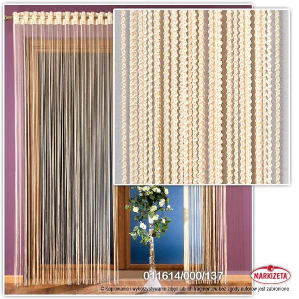 Firanka konfekcjonowana, tzw. "makarony",rozmiar (cm) podany jest na prosto, przed upięciem. Kolor jasna morela